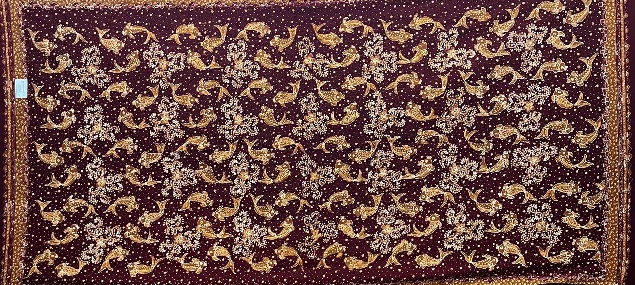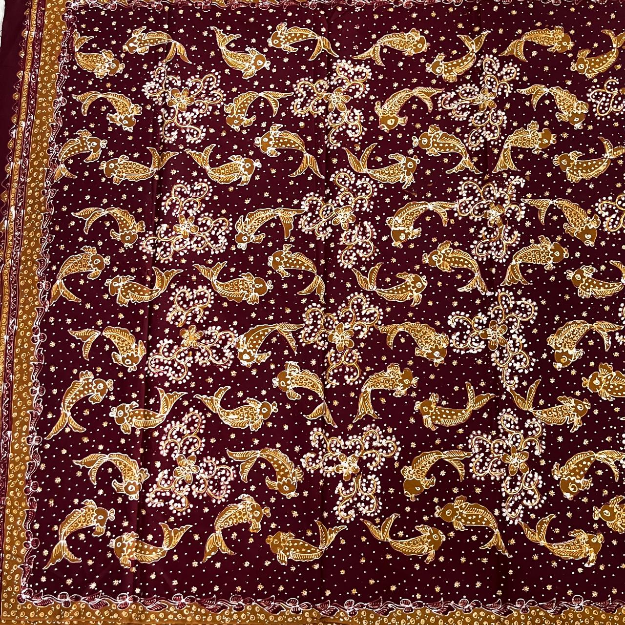 Kain Batik Dua Warna Motif Ikan Maroon Kuning